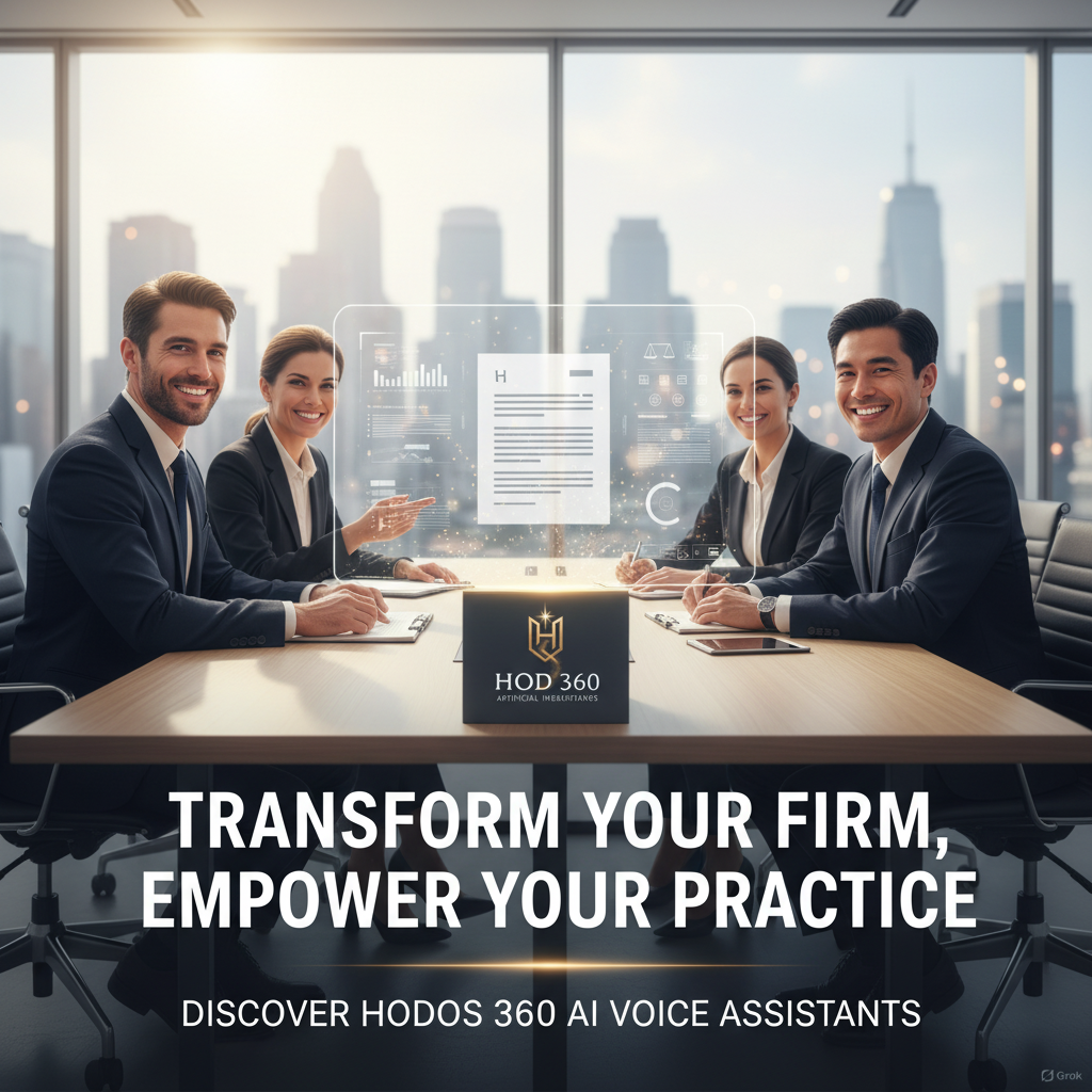 HODOS 360 is more than just an AI Voice Assistant provider; we offer a holistic AI-powered platform designed to optimize every facet of your legal operations. Our AI Voice Assistants integrate seamlessly with our other services, such as the AI Law Firm Management System for automated case management and client intake, and the AI Marketing Platform for advanced lead tracking and content generation. This interconnected ecosystem ensures that every client interaction, from initial call to case resolution, is managed with unparalleled efficiency and intelligence. By choosing HODOS 360, you're not just investing in an answering service; you're investing in a future-proof solution that empowers your firm to enhance client experience, boost operational efficiency, and drive sustainable growth. Discover how HODOS 360 can transform your legal practice – visit our website or schedule a personalized demo today to experience the future of legal communication.